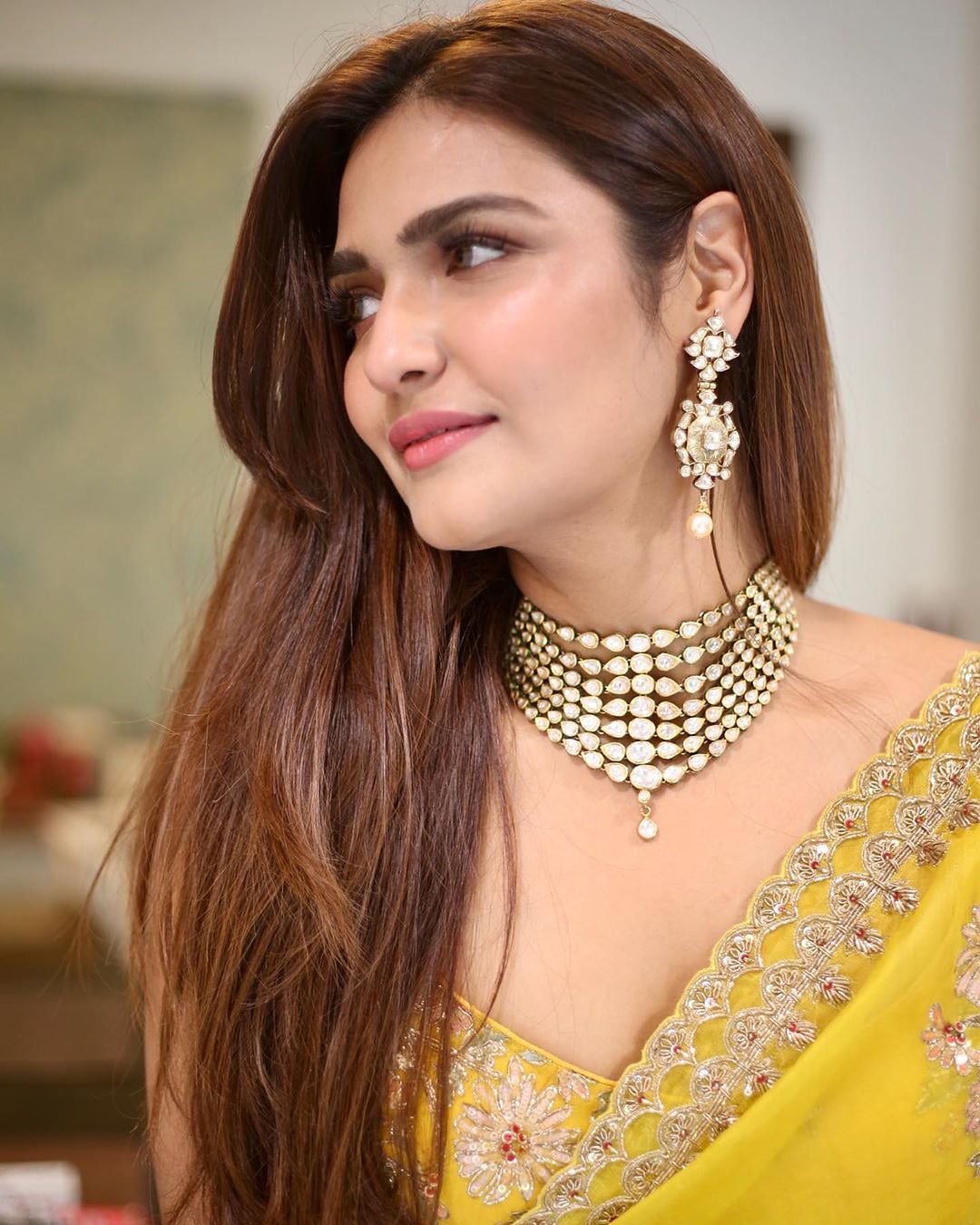 She dazzles us again with her sparkling yellow saree like Anushka from ‘Rab ne bana di jodi’.